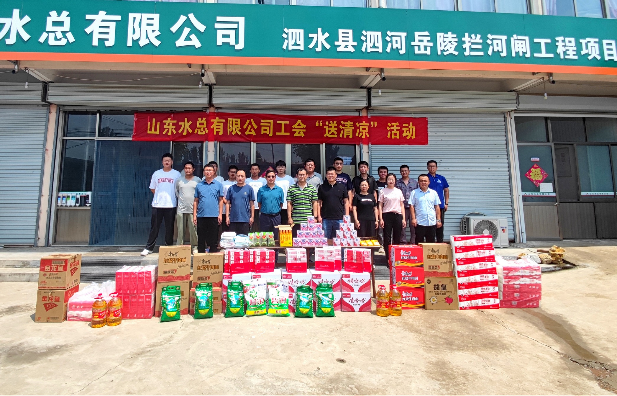 为深入学习贯彻落实习近平新时代中国特色社会主义思想,切实将公司的关怀及时送到一线职工的心坎上。7月24日,公司安全总监郭法文等一行人到第七分公司泗水县泗河岳陵闸项目开展“送清凉”活动。