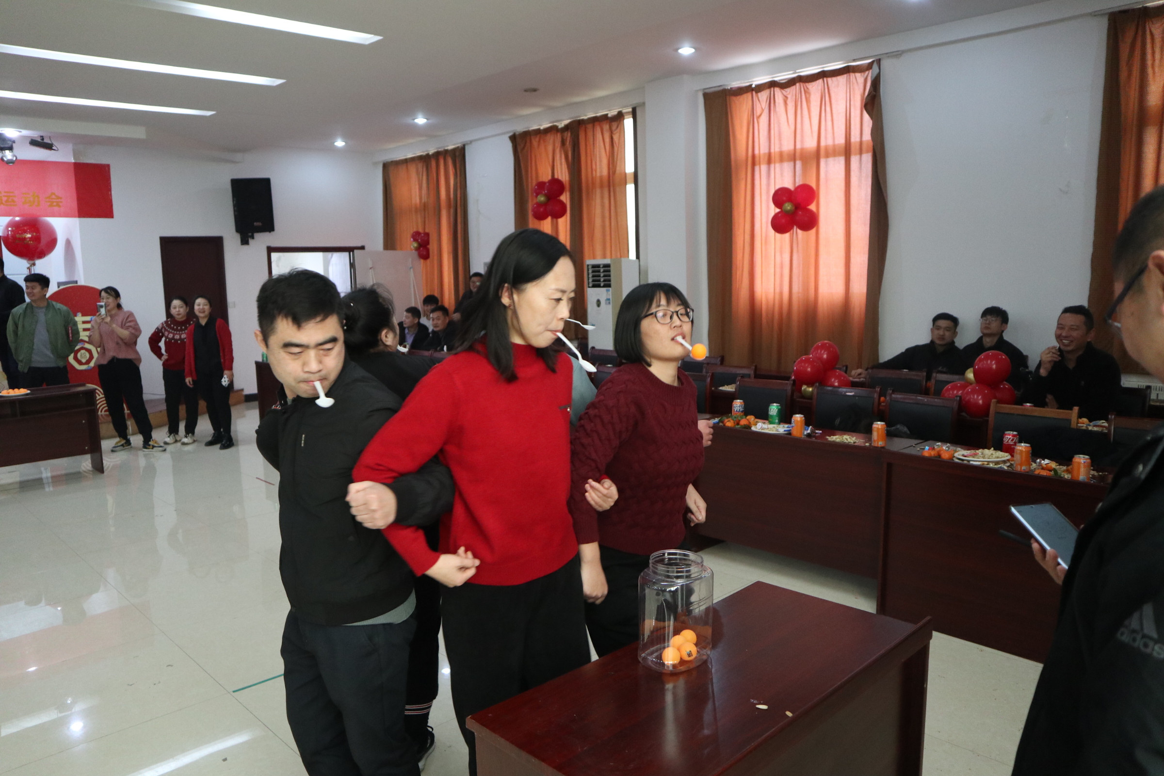 此次运动会集趣味性、协作性、竞争性于一体,包括同舟共济、叠纸杯接力、勺子大作战、双龙戏珠、趣味保龄球、蒙眼击鼓、袋鼠跳跳、够级、掼蛋等多个项目。比赛现场既紧张激烈,又妙趣横生,每项运动不仅考验参赛选手的体力与动作协调性,更是参赛队伍团结协作和智慧的完美比拼。赛场上,加油声、呐喊声此起彼伏,欢声笑语不绝于耳。