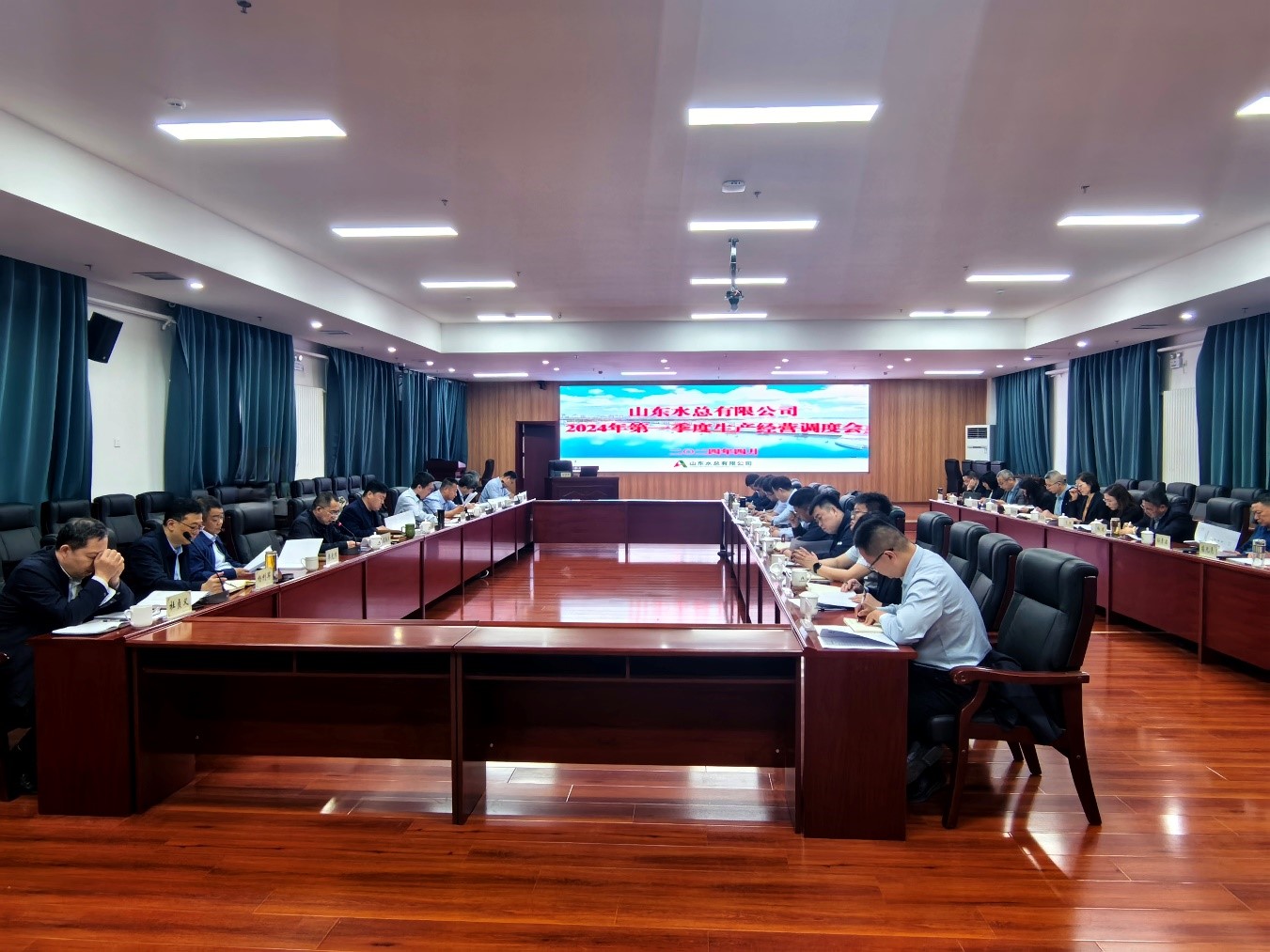 4月29日上午,山东水总召开2024年一季度生产经营调度会,总结一季度生产经营等重点工作情况,分析当前面临的机遇与挑战,安排部署下一步工作。公司党委书记、董事长裴文晶出席会议并讲话,党委副书记、董事、总经理靳文硕主持会议。公司领导班子成员及高管、资深专家、各权属单位负责人、总部各部室负责人参加会议。