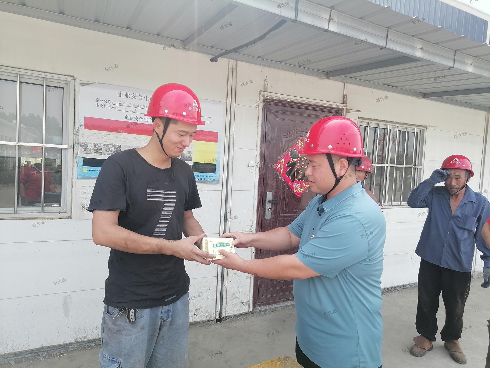 炎炎夏日,浓浓牵挂。为保障广大农民工的职业安全与身心健康,做好农民工防暑度夏工作,近日,水工机械公司组织开展对农民工慰问关怀活动。