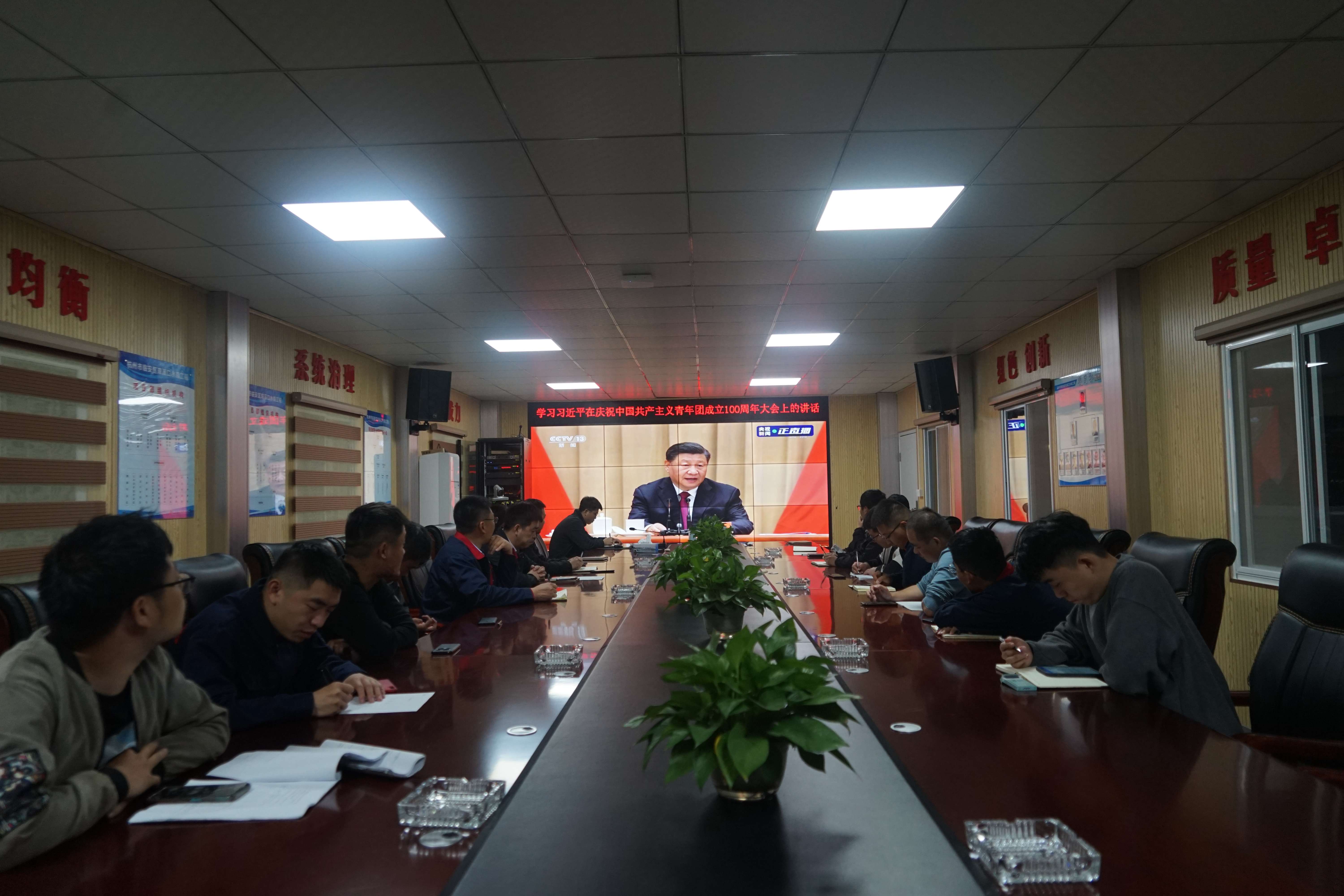 5月10日,杭州鲁润公司与第六分公司共同组织双溪口水库工程团员青年,观看中国共产主义青年团成立100周年庆祝大会实况。庆祝大会上,习近平总书记发表了重要讲话。