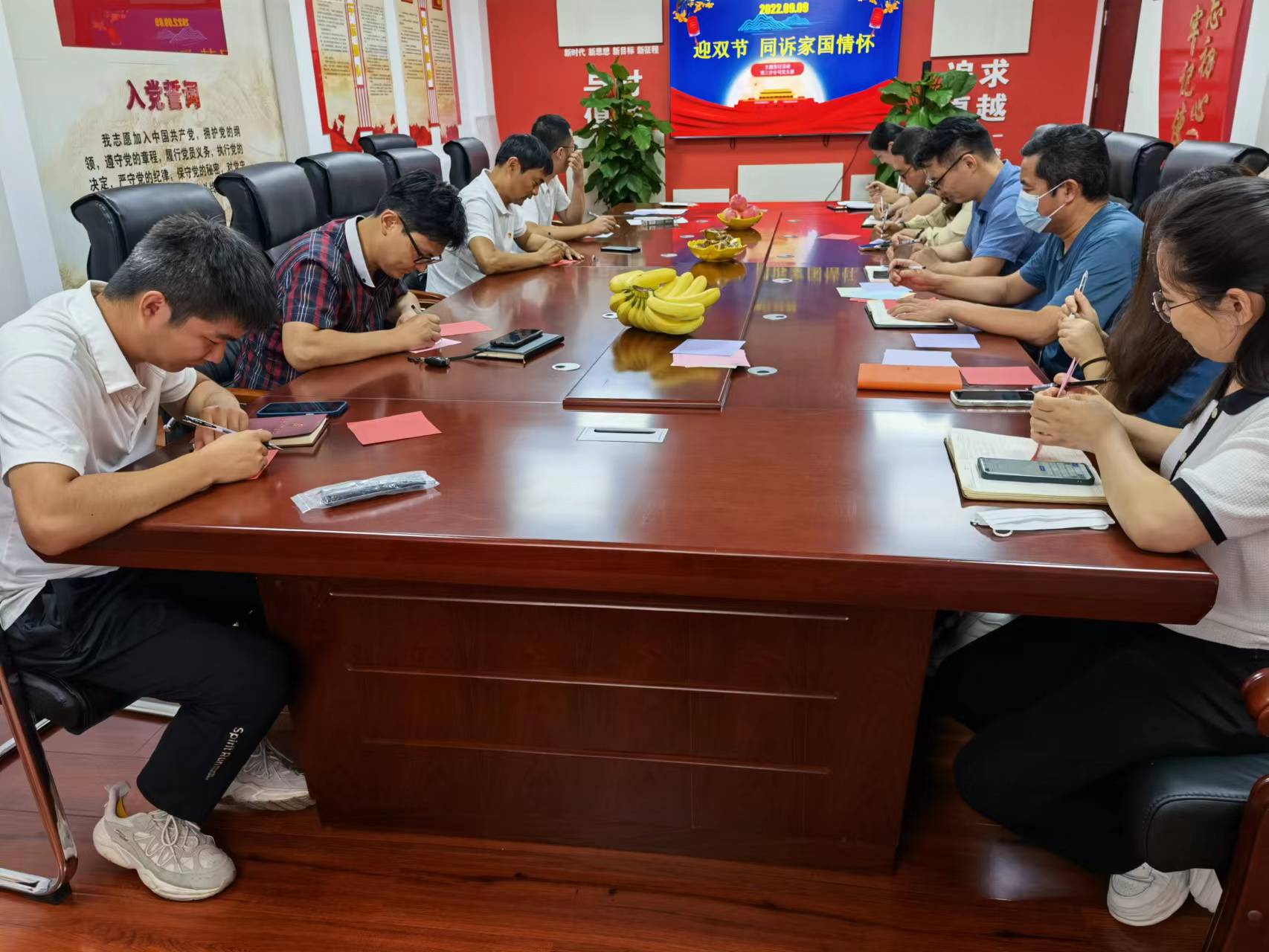 2022年9月9日是毛泽东逝世46周年,活动先是同读《月寄人间无限情——读毛泽东诗词中的咏月章句》,共同纪念伟大领袖。随后一起观看党员、群众制作的廉洁小视频,倡导干部职工廉洁过双节。最后大家同写寄语、同吃月饼,相互祝福,祝福家庭美满幸福、祝福公司更好更快的发展、祝福祖国更加繁荣富强,并表示要将个人的努力和家国情怀融入到不懈奋斗中去!