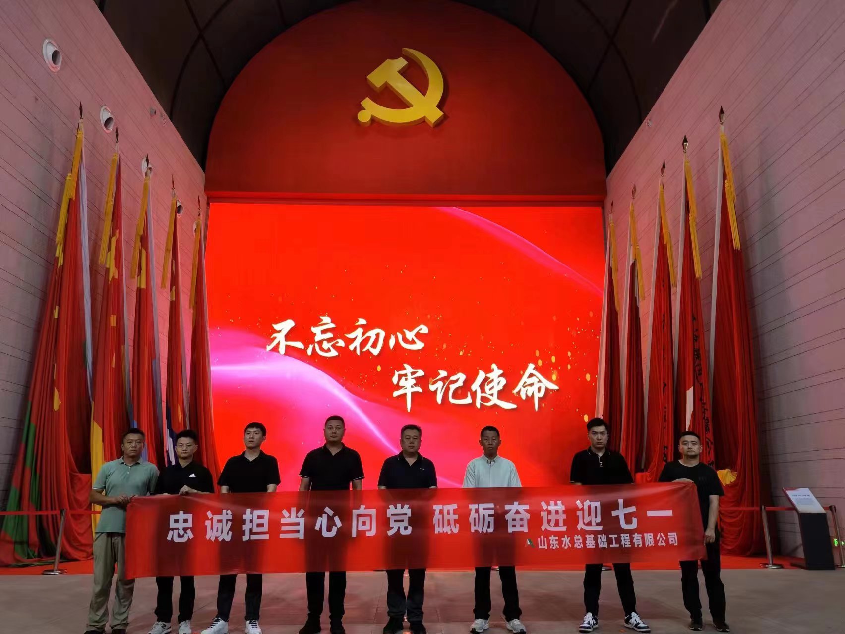 为进一步加强职工的担当奉献精神,在建党102周年来临之际,6月28日,基础有限公司枣庄市“两库四河”引调水工程隧洞工程项目部和蟠龙河引调水六标工程项目部全体职工,来到枣庄市铁道游击队纪念馆开展“忠诚担当心向党 砥砺奋进迎七一”主题党日活动。